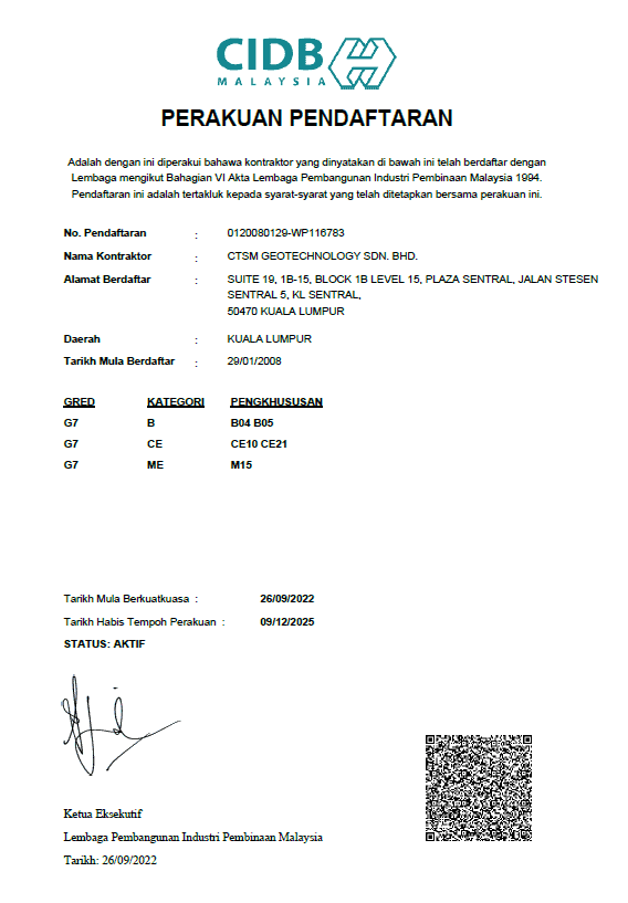 We were incorporated in Malaysia on 2 October 2001 as a specialist construction company that provides cost-effective solutions to all scopes of geotechnical-related engineering works.